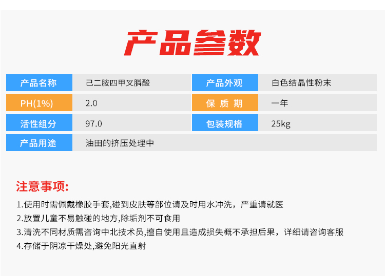EDTMPA采用复合塑编袋包装或符合出口环保要求的包装,每袋净重25kg,贮于室内阴凉处,贮存期十个月。